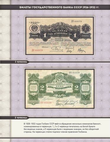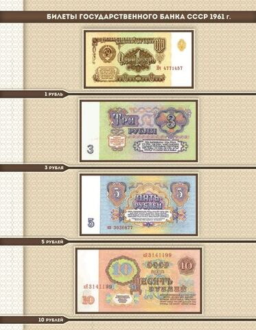 За время существования СССР были в финансовой системе: червонцы, "рубль золотом", несколько деноминаций и курс американского доллара в 61 советскую копейку. Все это отражалось в банковских билетах страны. Отследить изменения можно в нашем альбоме для коллекционирования банкнот СССР.