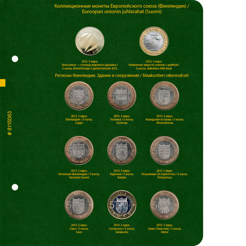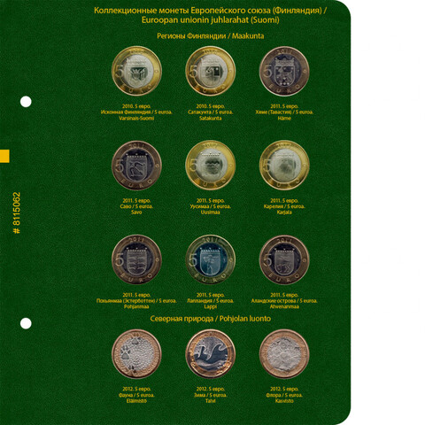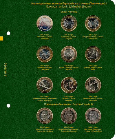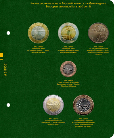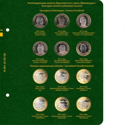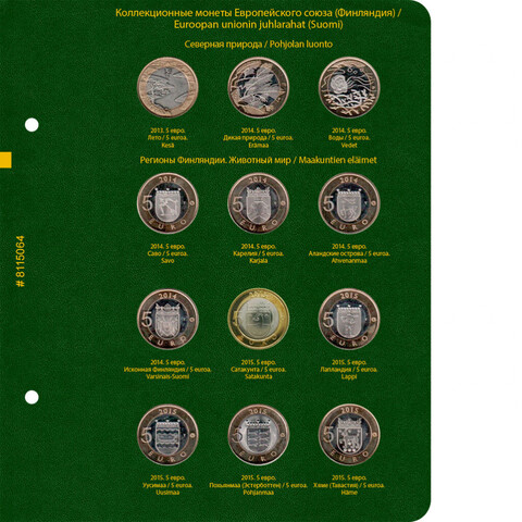 Альбом для хранения коллекционных монеты Финляндии 2003-2018 годов из недрагоценных металлов номиналом 5 евро. Данные монеты не предназначены для обращения и выпускались исключительно с целью продажи коллекционерам.