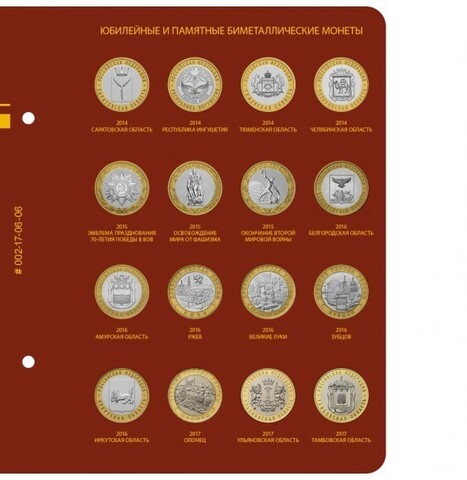 Альбом завершается монетами 2017 года. Все ячейки в альбоме подписаны. Коллекция не завершена, поэтому альбом имеет продолжение в виде 2-го тома.