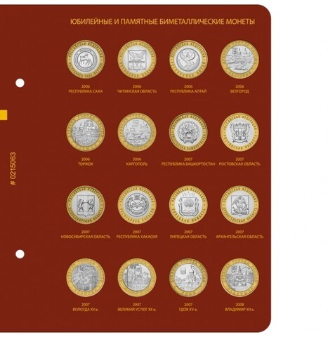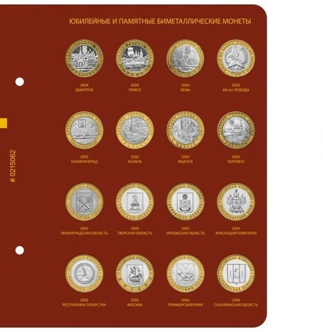 Альбом предназначен для коллекционирования 10 рублёвых биметаллических юбилейных и памятных монет России. Это серии «Древние города России», «Российская Федерация», «200‐летие образования в России министерств», а также монеты, посвящённые различным памятным датам. Серия «Standard» учитывает только хронологию выпуска монет, без указания монетного двора.