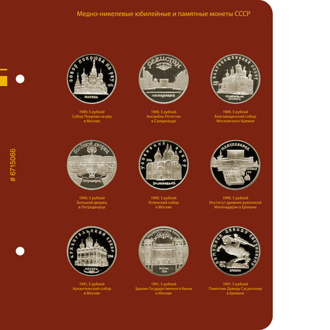 Альбом для хранения 1, 3 и 5 рублёвых монет, выпускавшихся в СССР в память об исторических событиях, в честь выдающихся деятелей государства, известных памятников культуры, в ознаменование юбилейных дат.