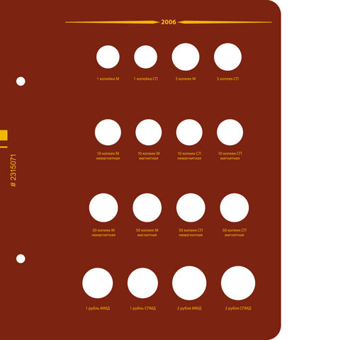 Второй альбом из двухтомника предназначен для коллекционирования монет РФ регулярного выпуска с 1997 года. Серия предлагает хранение монет в альбоме по годам. Второй том содержит ячейки для монет выпусков с 2006 по 2014 годы.