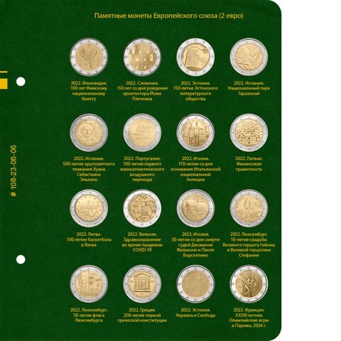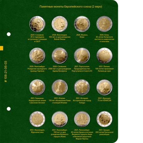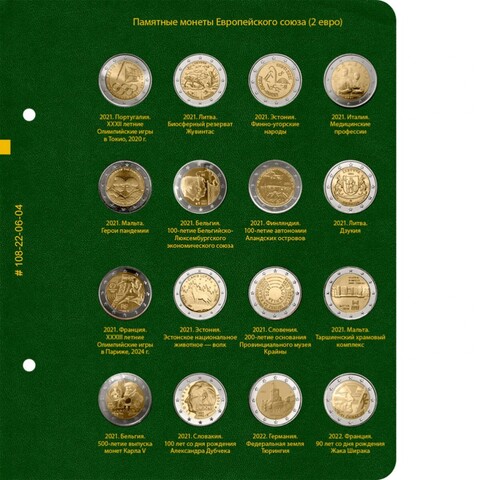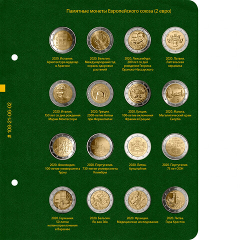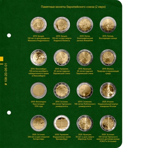 Альбом для хранения коллекции памятных монет Европейского союза номиналом 2 евро с 2019 года.