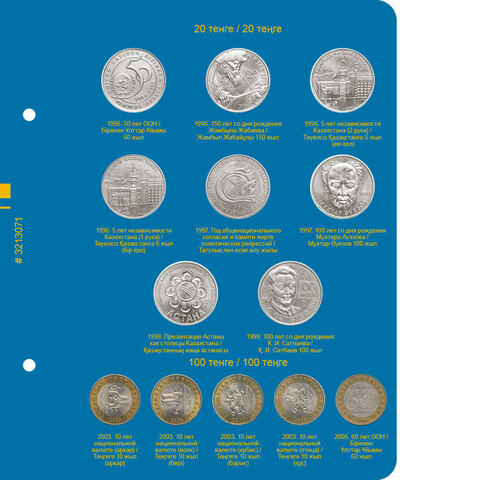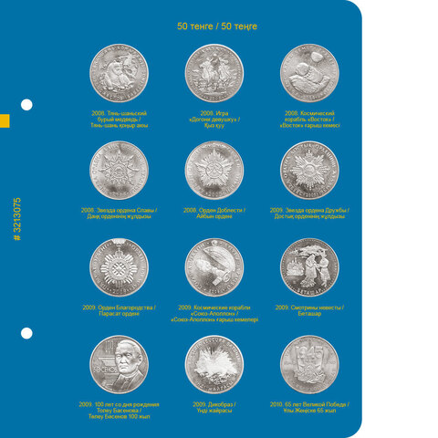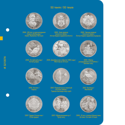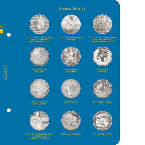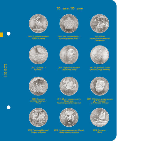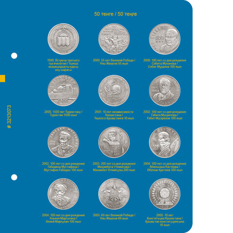 Все остальные листы предназначены для монет номиналом 50 тенге. Эти монеты располагаются в том порядке, в котором они выпускались Национальным Банком Республики Казахстан, независимо от того к какой серии они относятся.