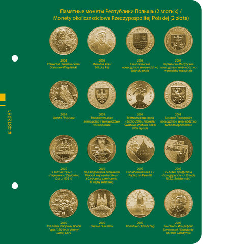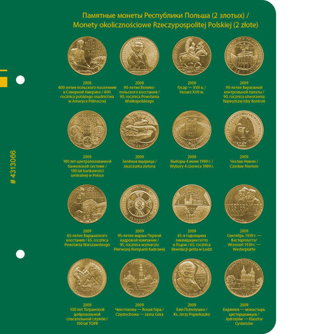 Альбом предназначен для коллекционирования польских памятных монет номиналом 2 злотых. Монеты начали выходить в 1995 году и выпускаются по сей день. Во втором томе расположены ячейки для 96 монет 2004–2009 гг.