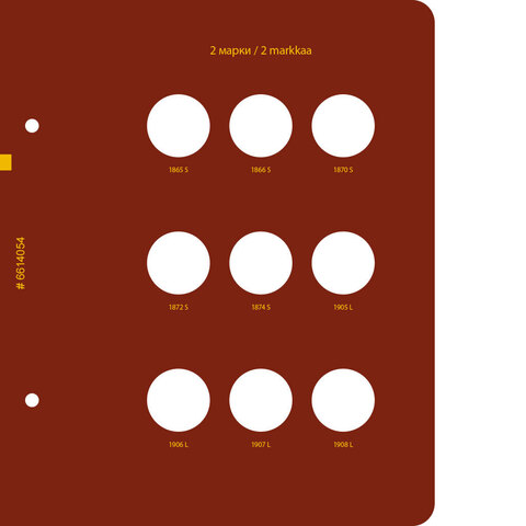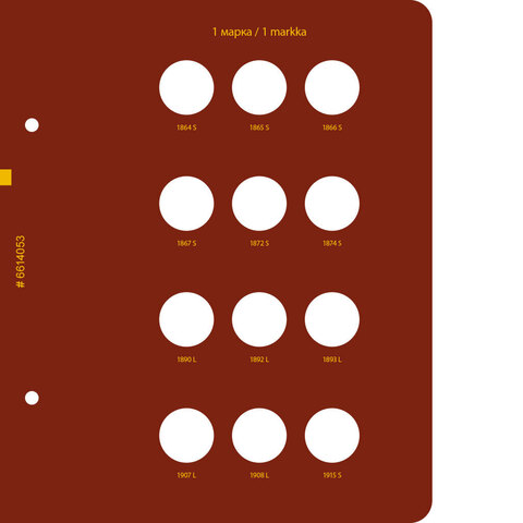 В альбоме учитываются все серебряные (25, 50 пенни; 1, 2 марки) и золотые (10, 20 марок) монеты регулярного чекана Великого княжества Финляндского.