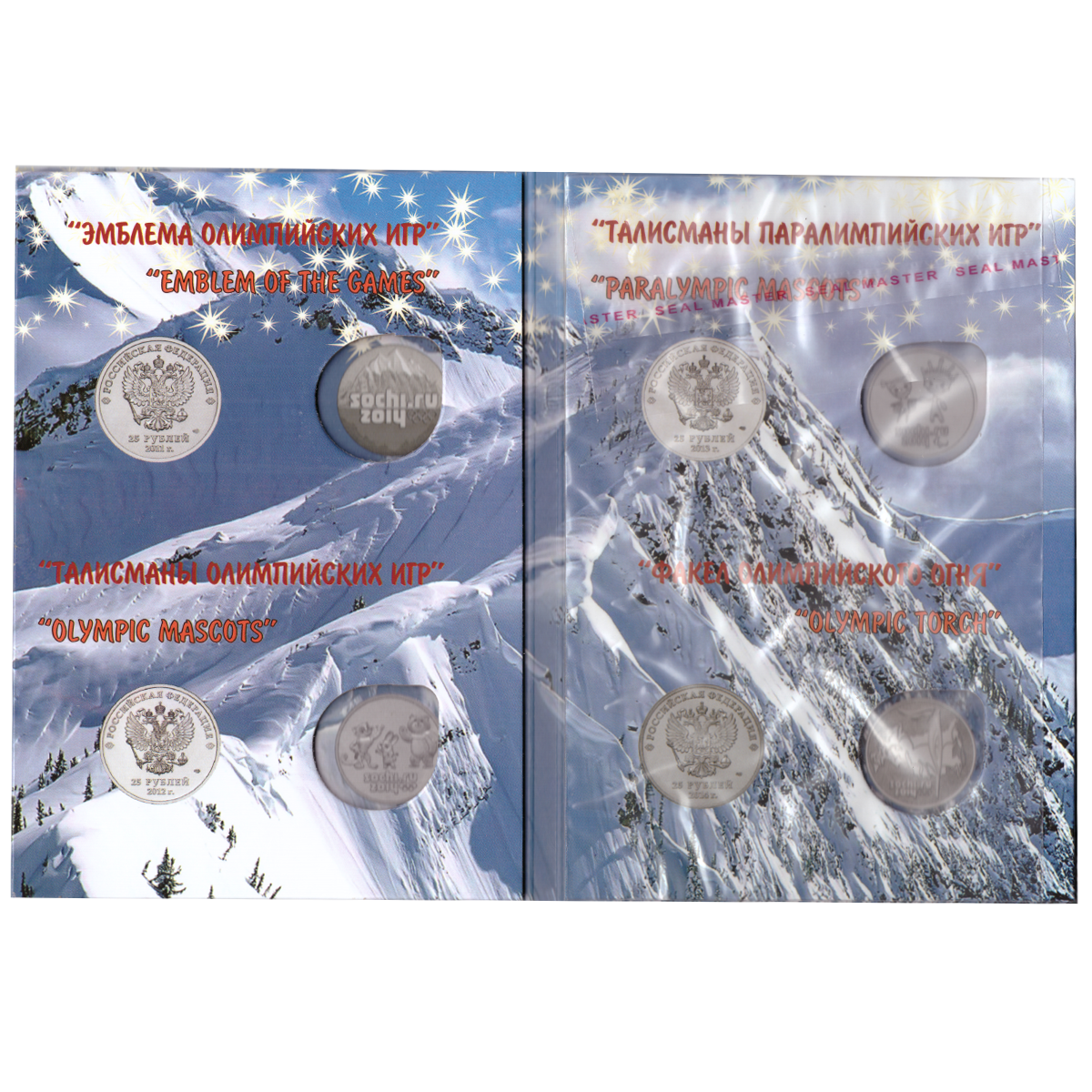 Альбом для 4 монет Сочи 25 рублей и для 100 рублевой банкноты Сочи.