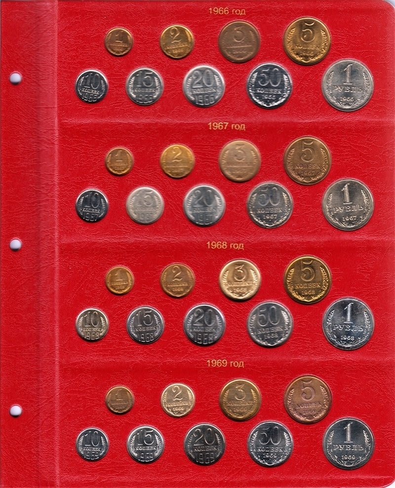 Альбом для монет СССР регулярного чекана 1961-1991 гг. КоллекционерЪ (по годам) – лучшее предложение на рынке нумизматики. Данный альбом для монет является наиболее полным собранием регулярных монет СССР за период 1961-1991 гг. В альбоме найдется место под ходячку достоинством от 1 копейки до 1 рубля. Все ячейки в альбоме расположены по хронологии выпуска и годам.