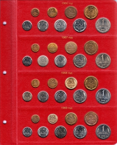 Альбом для монет СССР регулярного чекана 1961-1991 гг. КоллекционерЪ (по годам) – лучшее предложение на рынке нумизматики. Данный альбом для монет является наиболее полным собранием регулярных монет СССР за период 1961-1991 гг. В альбоме найдется место под ходячку достоинством от 1 копейки до 1 рубля. Все ячейки в альбоме расположены по хронологии выпуска и годам.