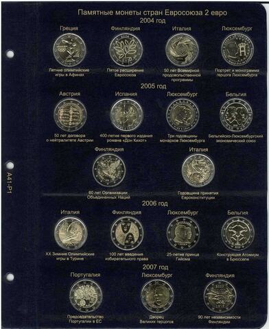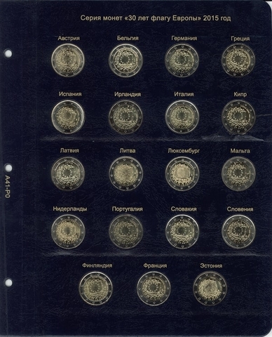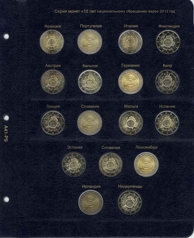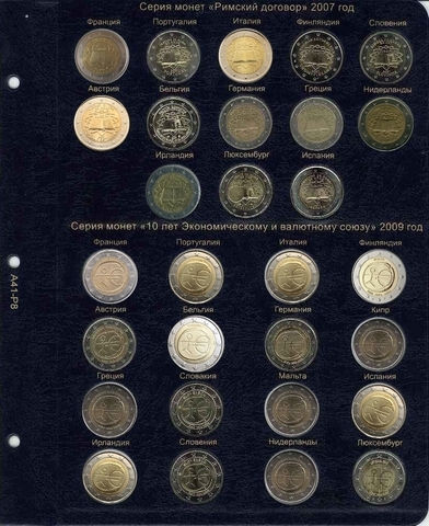Альбом предназначен для размещения всей коллекции памятных и юбилейных монет 2 евро.