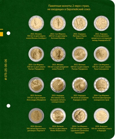 Альбом для памятных монет номиналом 2 евро, государств не входящих в Европейский союз
