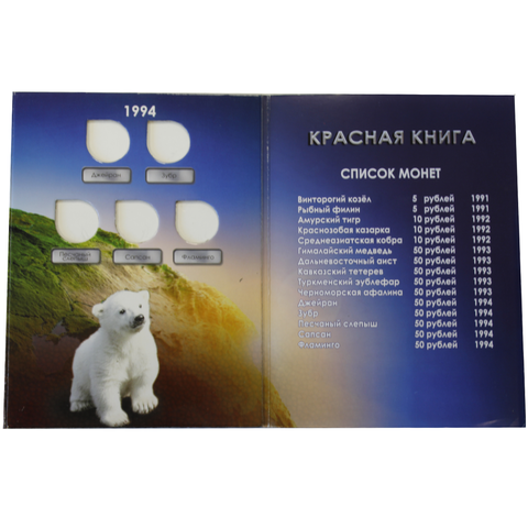 Альбом для памятных монет России "Красная книга" (Картонный). Уценка