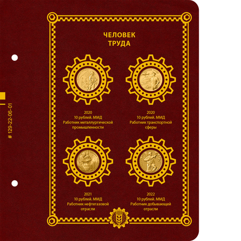 Альбом для коллекции памятных монет «Человек труда» номиналом 10 рублей с латунным гальваническим покрытием. В настоящий момент Центральный банк России выпускает по 1-2 монете в год, начиная с 2020. Надеемся, что серия будет иметь длительное продолжение.