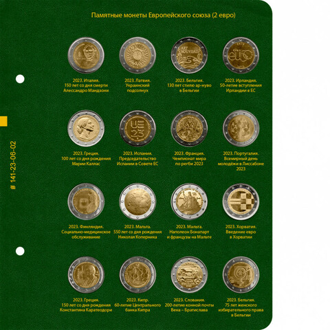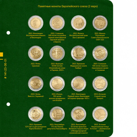 Альбом для хранения коллекции памятных монет Европейского союза номиналом 2 евро с 2022 года.