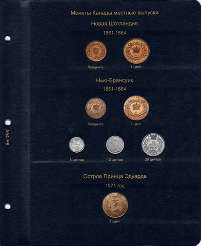 Также в альбом-книгу включены региональные выпуски монеты провинций Канады до объединения валютной системы: «Новая Шотландия», «Нью-Брансуик», «Остров Принца Эдуарда» и «Ньюфаундленд».