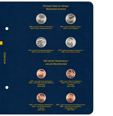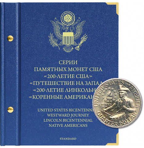 Альбом для серий памятных монет США: “200-летие США”, “Путешествие на запад”, “200-летие Линкольна”, “Коренные американцы”