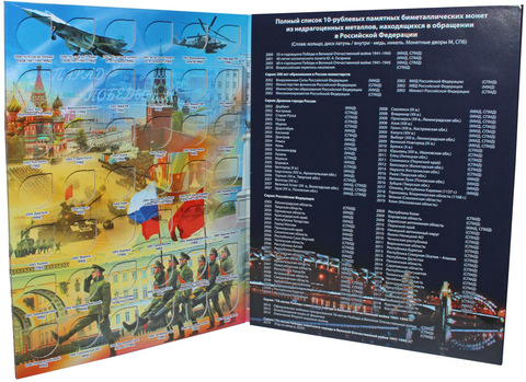 Альбом предназначен для хранения 144 Биметаллических монет (полный набор по 2 монетным дворам ММД и СПМД, включая 2021 год. + 16 неподписанных ячеек.