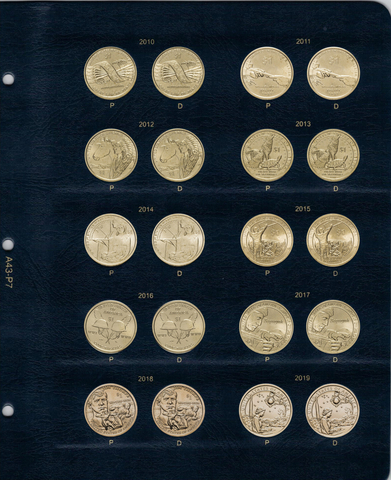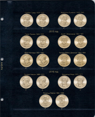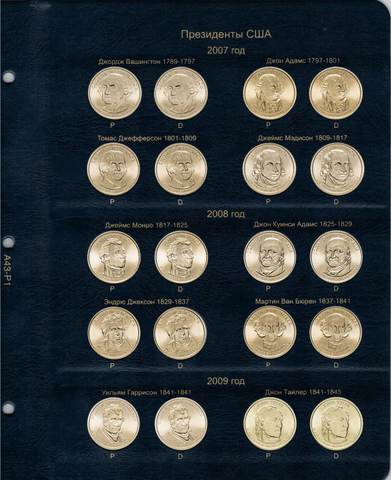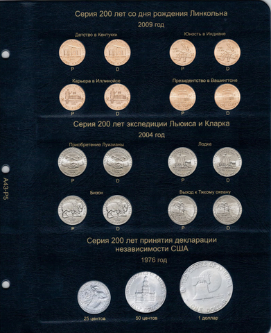 Данный альбом является более углубленным собранием памятных монет США, т.к. в альбом включены разделения по монетным дворам: Денвер (D) и Филадельфия (P).