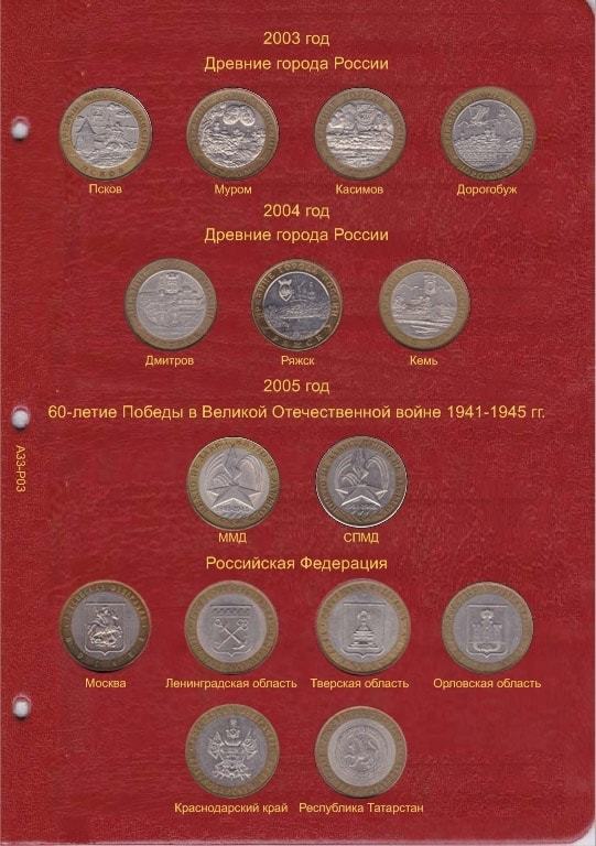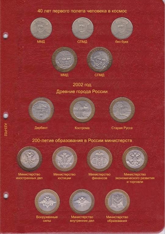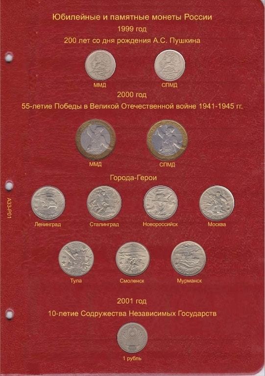 Альбом для юбилейных и памятных монет России в двух томах имеет полную классическую хронологию без разделения по номиналам, металлу, выпуску монет или тематики.