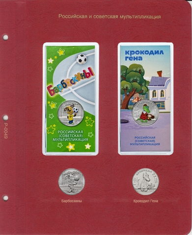 Пока в альбоме 5 листов для 43 монеты, но в будущем, по мере выпуска новых монет он будет дополняться и новыми листами (которые также можно будет приобрести отдельно).