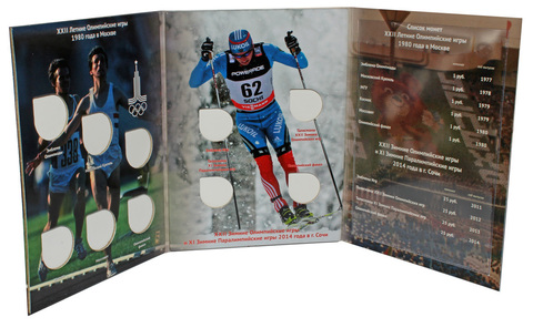 Альбом "От Москвы до Сочи" предназначен для размещения монет СССР "Олимпиада 1980 г" и монет 25 р "Олимпиада в Сочи":