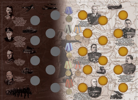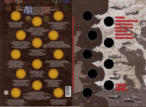 Альбом-планшет блистерный для 14 монет 5 рублей "70 лет Победы - Освобождение городов-столиц" (Со стрелками) Нумизмания