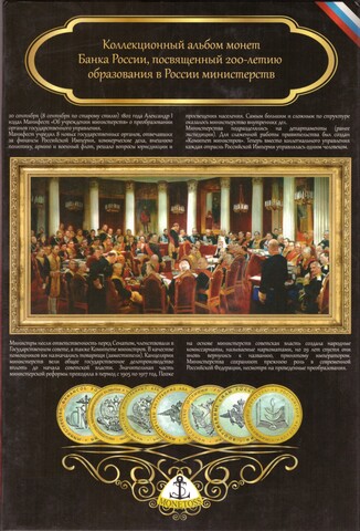 Альбом-планшет блистерный картонный "200 лет образованию В России министерств" (7 монет ) Производство Монетос