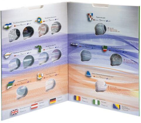 Альбом-планшет блистерный картонный "Регионы России. Часть 2" (14 монет по 10 р 2008 - 2010 годы) Производство Монетос