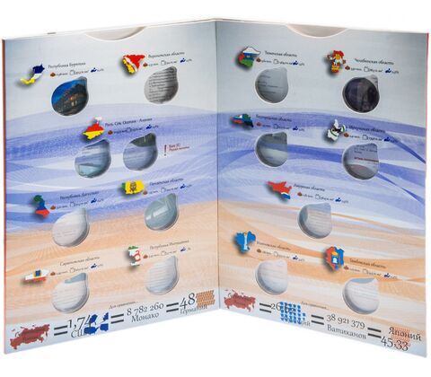 Альбом-планшет блистерный картонный "Регионы России. Часть 3" (15 монет по 10 р 2011 - 2017 годы) Производство Монетос