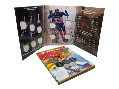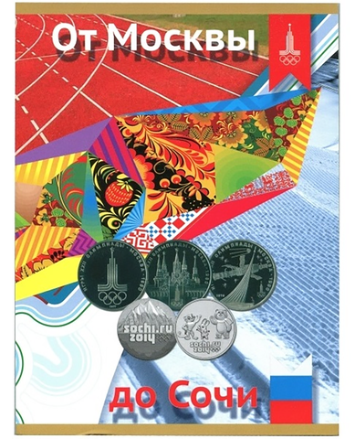 Альбом-планшет для монет и банкноты "От Москвы до Сочи" Олимпиада 1980 и 2014 гг. (картон) (СОМС)