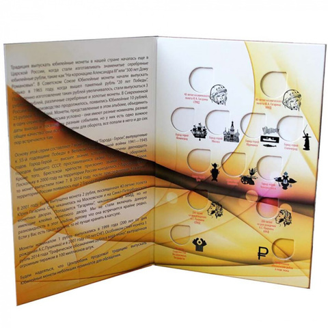 Альбом-планшет картонный для монет 1 и 2 рубля "Города-Герои и другие монеты" Произв Нумизмания