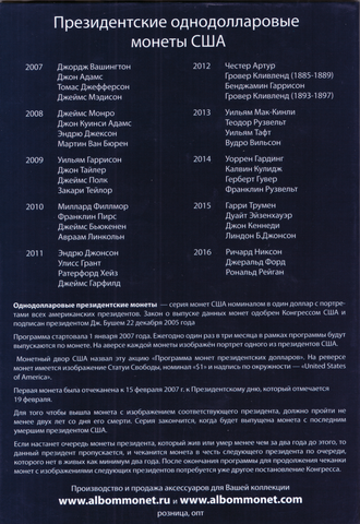 Альбом Президенские однодолларовые монеты США( б/у) (Альбом для коллекционирования)