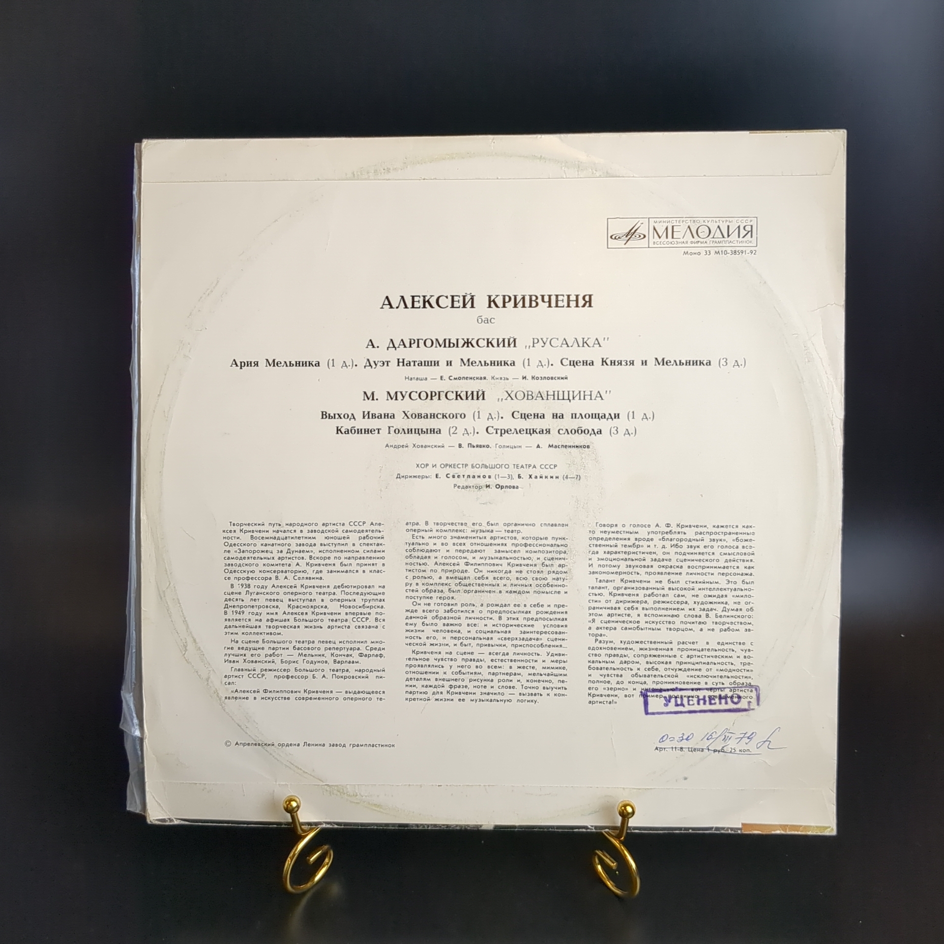 Алексей Кривченя бас виниловая пластинка 12 дюймов Арии и сцены из опер, LP классика, винтаж СССР Мелодия. Классическая музыка на виниле. Конверт VG / Диск EX-