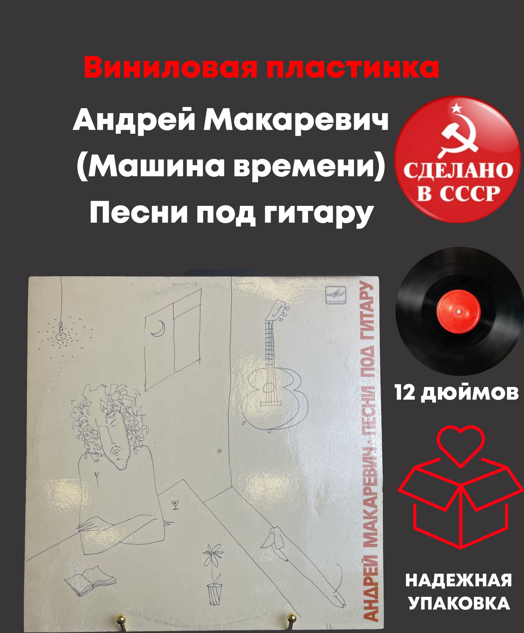 Андрей Макаревич (Машина времени) - Песни под гитару. Виниловая пластинка 12 дюймов. Мелодия СССР 1989 год. Конверт EX- / Диск EX