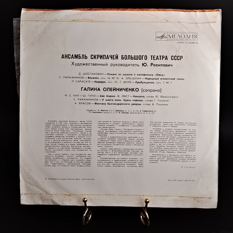 Ансамбль скрипачей Большого театра СССР виниловая пластинка 12 дюймов худ.рук. Ю.Реентович, классика, LP, винтаж СССР Мелодия. Присутствуют следы использования - состояние на фото