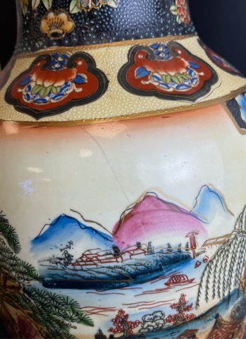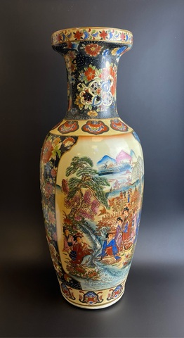 Антикварная винтажная напольная ваза фарфор, клеймо GUXIANG YIYI старый Китай 20 век, ручная роспись, высота - 62 см. Размеры : 62х26 см.