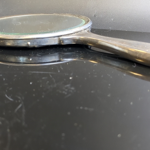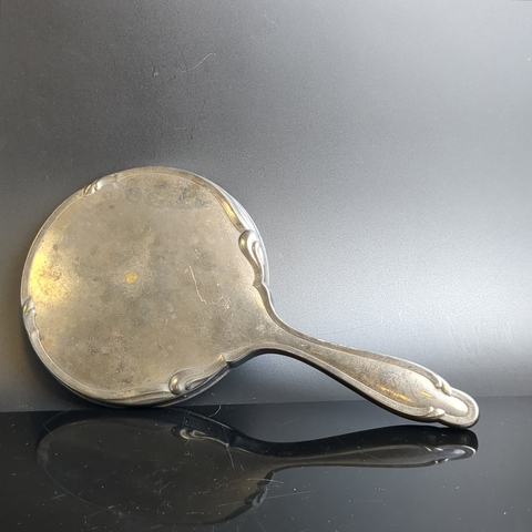 Антикварное ручное зеркало с цветочным декором в стиле модерн, металл, стекло. Будуарное зеркало. Клеймо WMF. Европа Württembergische Metallwarenfabrik (WMF), Германия, 1886 -1903 гг. Размеры 14 х 27 см