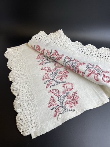 Антикварный старинный рушник до 1917 года, ручная вышивка, домоткань, кружево , монограмма