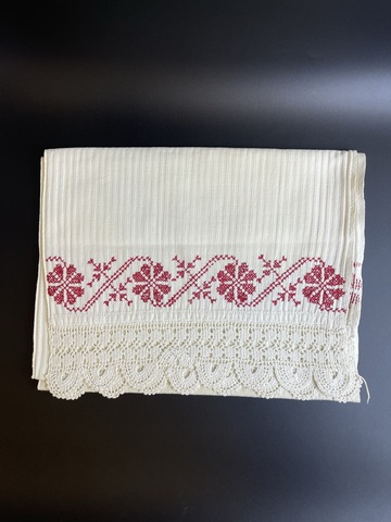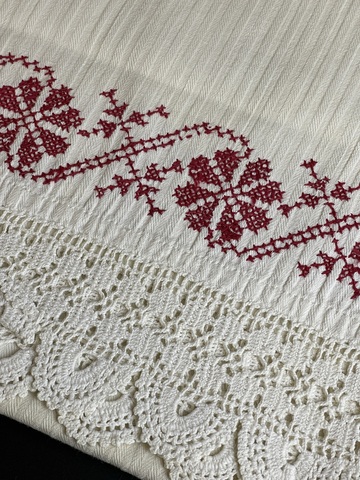 Антикварный старинный рушник до 1917 года, ручная вышивка, домоткань, кружево , монограмма