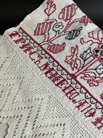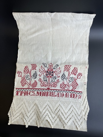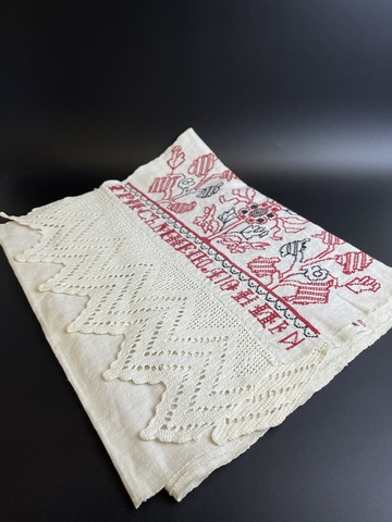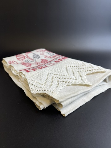 Антикварный старинный рушник до 1917 года, ручная вышивка, домоткань, кружево , монограмма