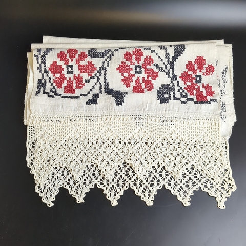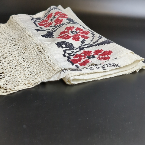 Антикварный старинный рушник до 1917 года, ручная вышивка, домоткань, кружево , монограмма