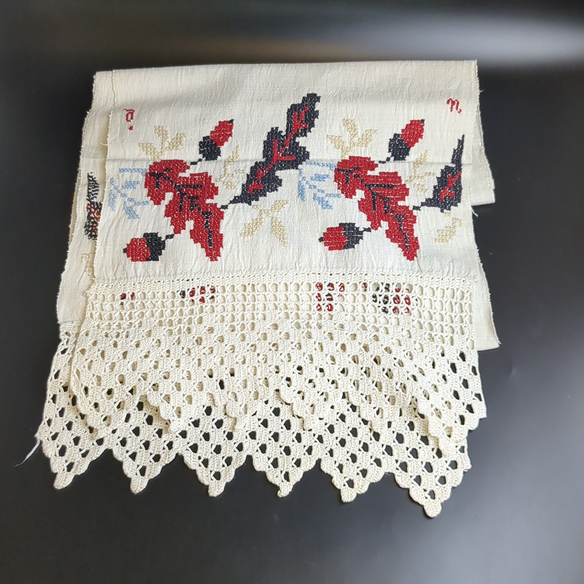 Антикварный старинный рушник до 1917 года, ручная вышивка, домоткань, кружево , монограмма