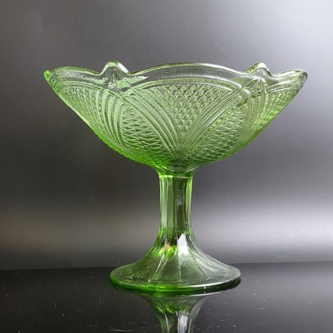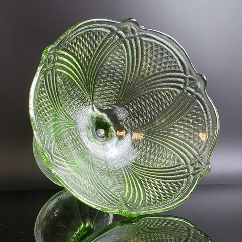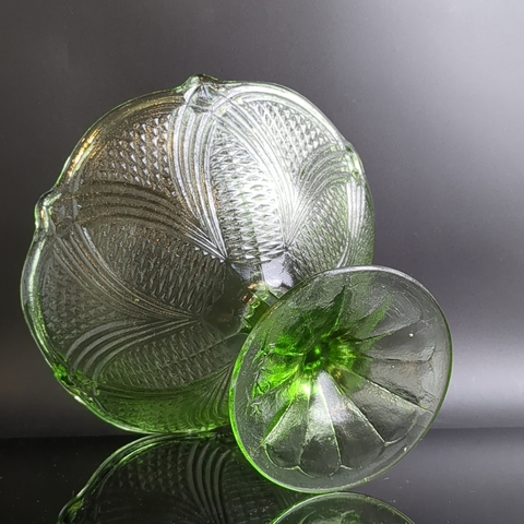 Антуражная ваза для фруктов из прессованного зеленого стекла, рельефная, клеймо ц. 72 к, диаметр -22 см, винтаж СССР 1960х гг. Высота - 18 см. Присутствуют следы использования- состояние на фото