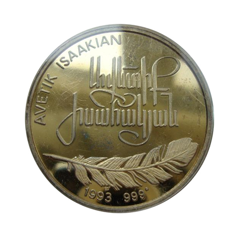 Армения медаль 1993 Аветик Исаакян Армянский поэт СЕРЕБРО