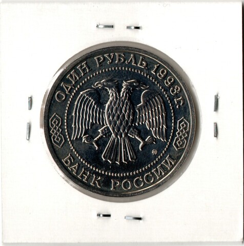 Аверс: Вверху вдоль канта - номинал «Один рубль» и год выпуска «1993 г.», внизу - слова «Банк России». В середине - двуглавый орел, под ним справа - монограмма монетного двора «ММД».