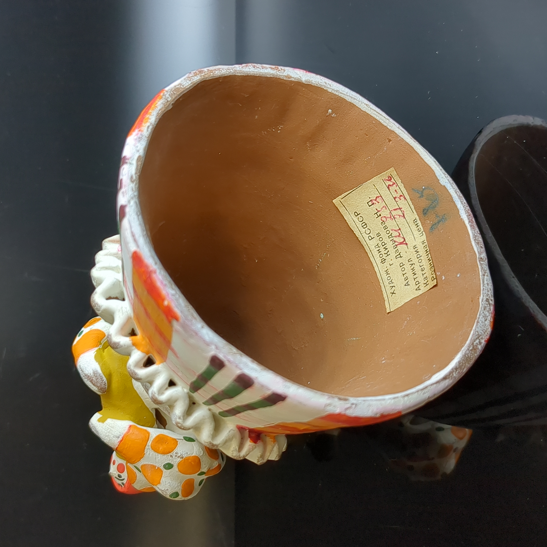 Статуэтка Авторская дымковская игрушка "Барыня с младенцем", кормилица , РСФСР г. Киров Давыдова Н.П , СССР 1960-1970 гг. Высота 18 см. Давыдова ( Трухина, Максимова) Надежда Петровна Родилась 12 сентября 1935 г. в г. Губаха Пермской области. В детстве с родителями переехала в г. Киров. Окончила среднюю школу рабочей молодежи и педагогическое училище в г. Халтурине Кировской области (1952–1956). В мастерские дымковской игрушки пришла в 1958 г., обучалась у 3.В. Пенкиной, Е.3. Кошкиной. Е.И. Косс-Деньшиной. С 1961 г. участница многих художественных выставок. Имеет памятные медали, почетные грамоты, награждалась премиями. С 1968 г. - член Союза художников СССР. Обучает молодых мастериц. Дымковская игрушка – один из самых известных промыслов русской народной игрушки. Он возник в слободе Дымково Вятской губернии. Дымковскую игрушку лепят из красной глины, смешанной с просеянным речным песком. Дымковская игрушка "Нянька-кормилица" — это символ заботы, плодородия и продолжения рода, отражающий быт и традиции русского народа, где няни заботились о детях; она символизировала достаток, здоровье, природу (зеленый) и семью (красный), а ее яркие цвета несли пожелания силы, чистоты и благополучия. Сервантное хранение, присутствуют следы использования, небольшие скольчики, трещинки, потертости - состояние на фото