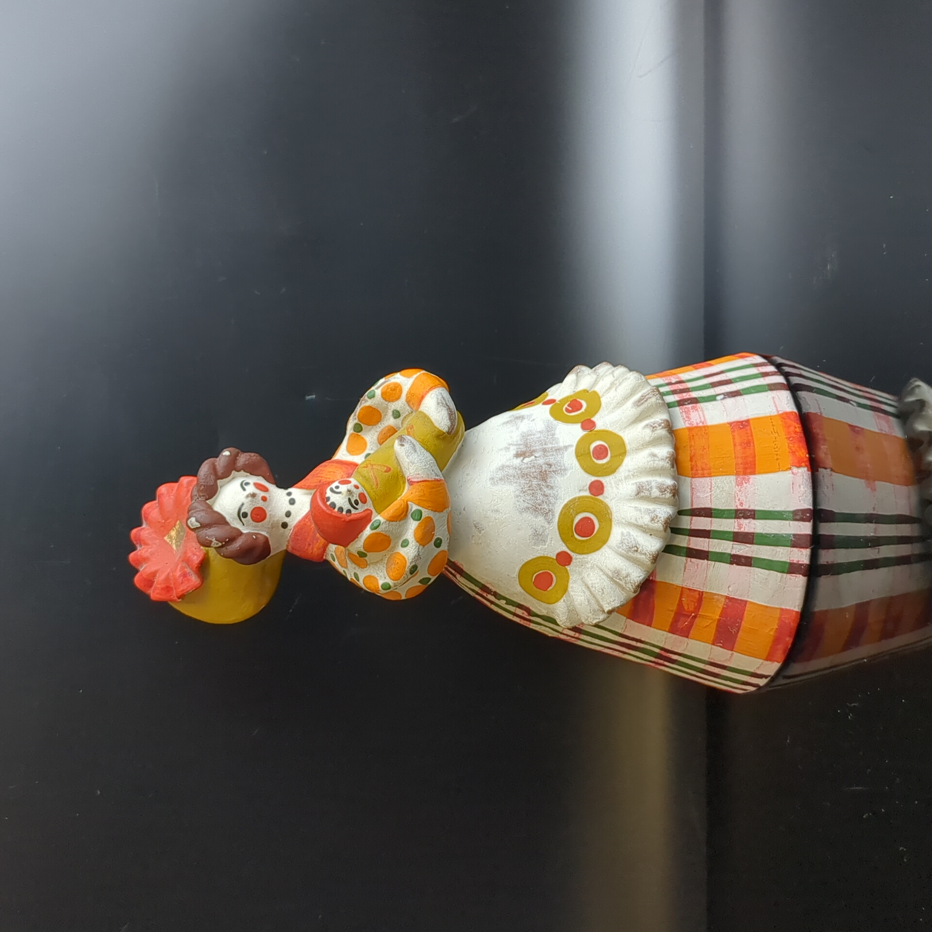 Авторская дымковская игрушка "Барыня с младенцем" , РСФСР г. Киров Давыдова Н.П , СССР 1960-1970 гг