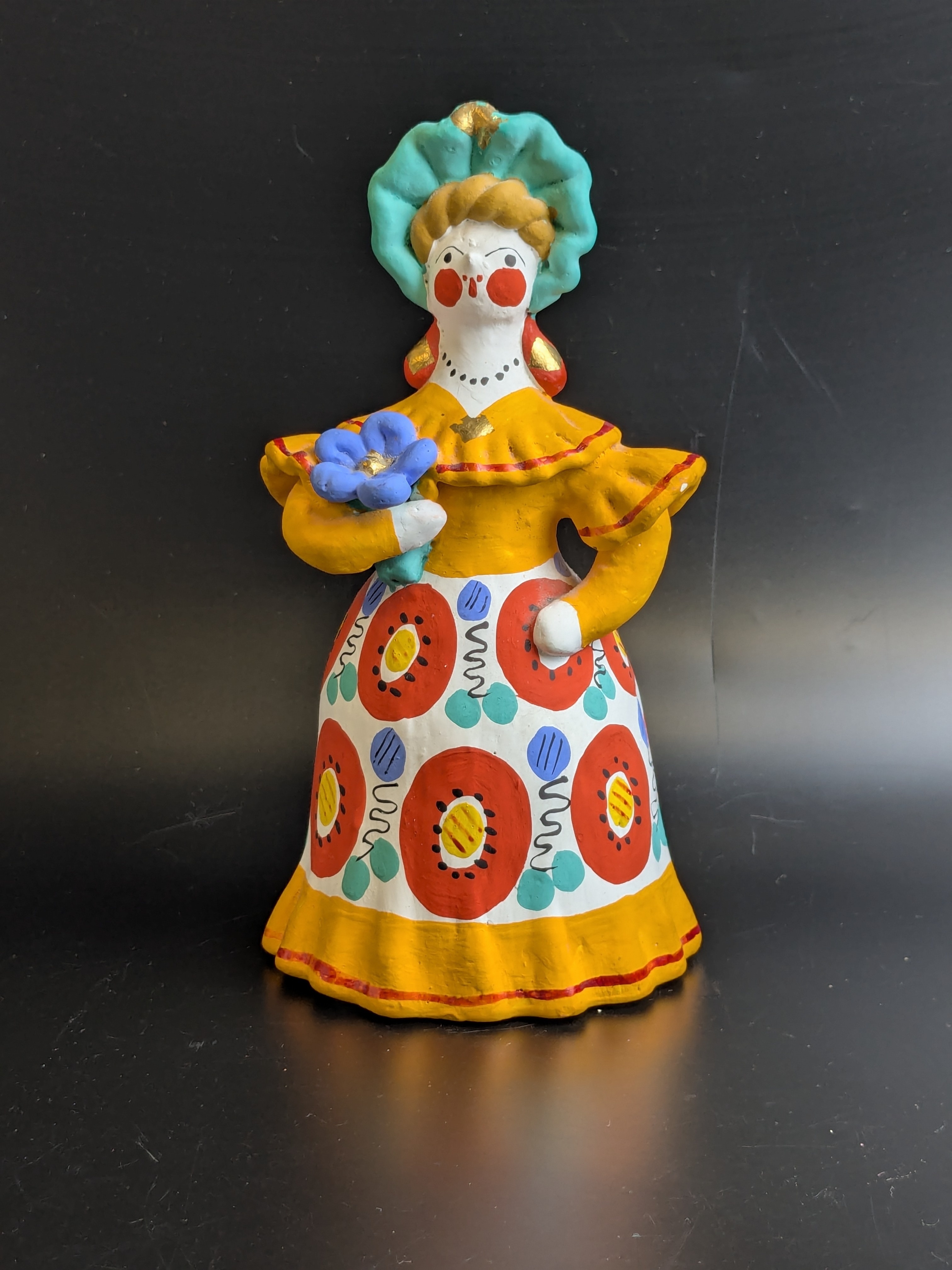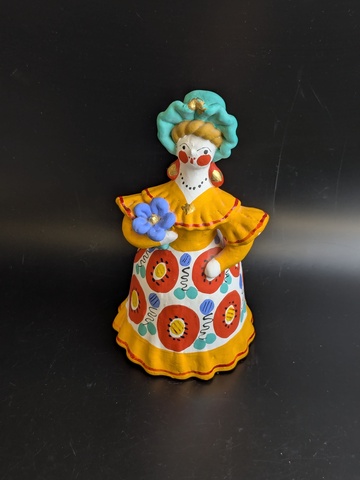 Авторская Дымковская игрушка "Барыня с цветком", автор Разумова, Киров/Вятка/Хлынов, глина, роспись, СССР.