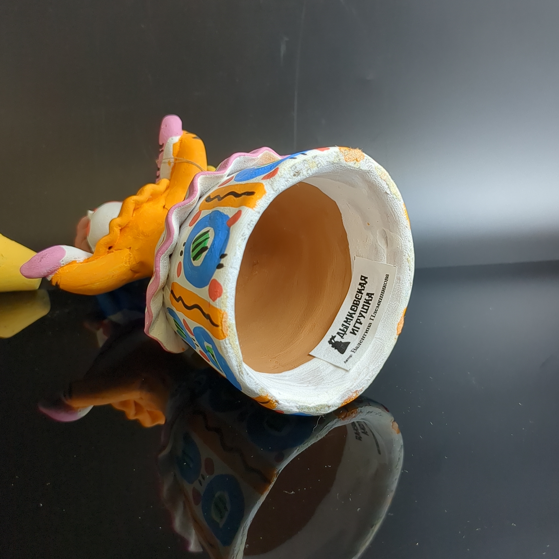 Авторская Дымковская игрушка Барыня с ведрами, Водоноска. Кормилица. Высота 14 см. Глина, ручная лепка и роспись, Киров-Дымка, винтаж 1970-1990 гг. Автор Валентина Племянникова. «Все надо делать с любовью! За глину браться с любовью, расписывать с любовью! А как иначе?» - говорит мастерица Валентина Племянникова, первая героиня цикла встреч «Беседы о промысле. Дымка», стартовавшем в Вятском художественном музее. Валентина Племянникова родилась в 1938 г. в г. Кирове. Окончила среднюю школу, а в 1968 г. - педагогическое отделение Кировского училища искусств. В мастерские дымковской игрушки пришла в 1958 г., обучалась у 3.В. Пенкиной, Е.3. Кошкиной, 3.И. Казаковой. С 1961 г. участница многих художественных выставок. Имеет памятные медали, почетные грамоты, дипломы, награждалась премиями. С 1980 г. - член СХ СССР. Обучает молодых мастериц. В 1985 г. в КХМ состоялась персональная выставка.