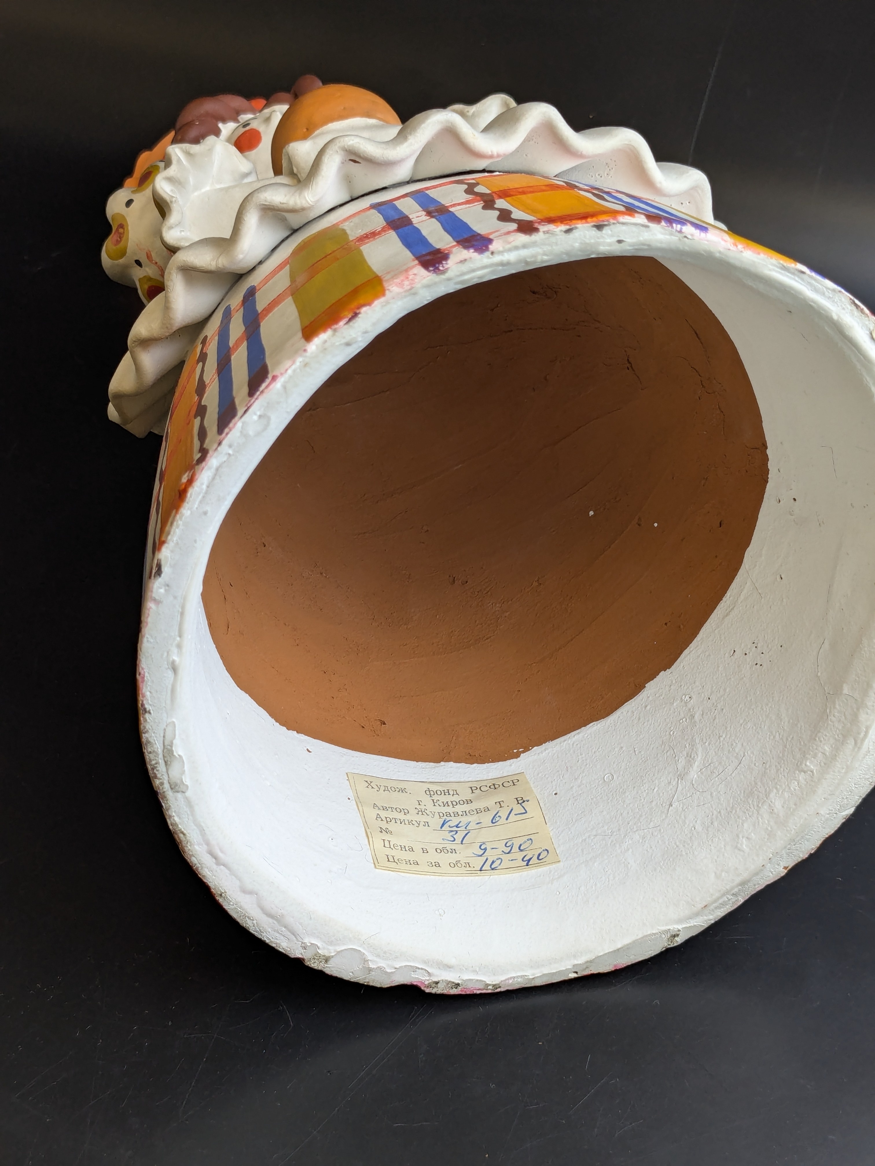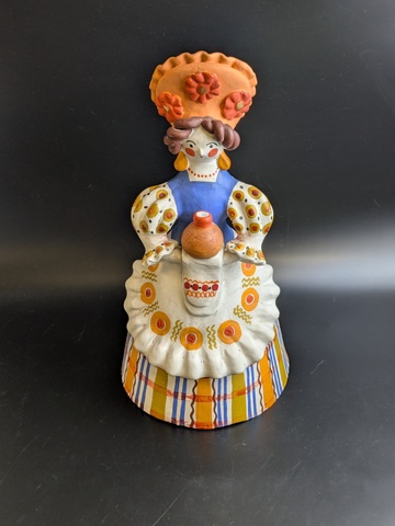Авторская дымковская игрушка Хлеб-соль . Барыня с караваем, хлебом, 31,5 см, винтаж, ручная роспись, 1970-1980 гг. Автор Журавлева Т.В.